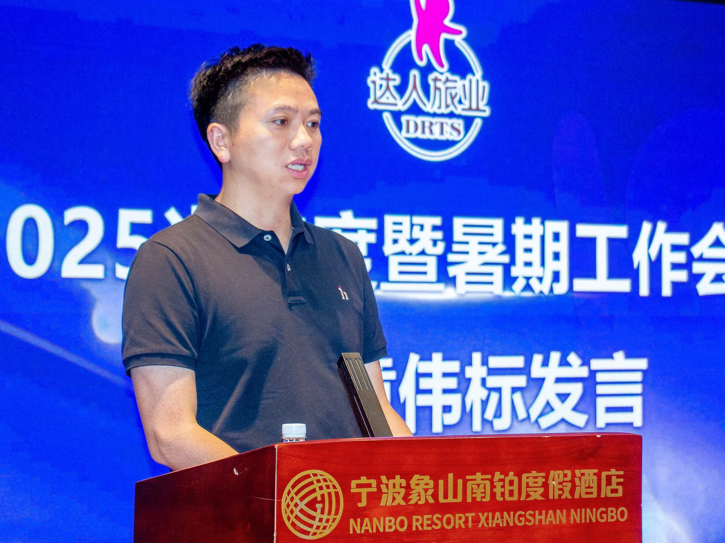 随后,达人旅业总裁童伟标发表了重要讲话。他首先肯定了全体员工在上半年度及暑期工作,并为后续工作指明方向。