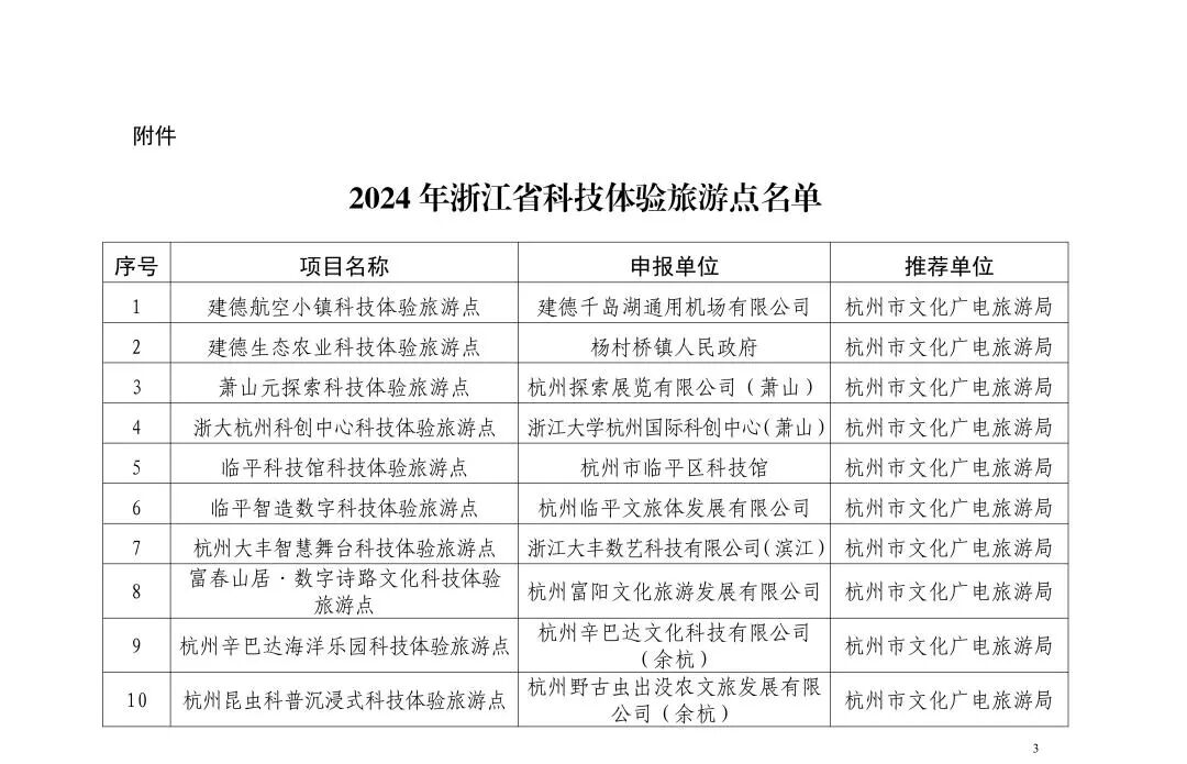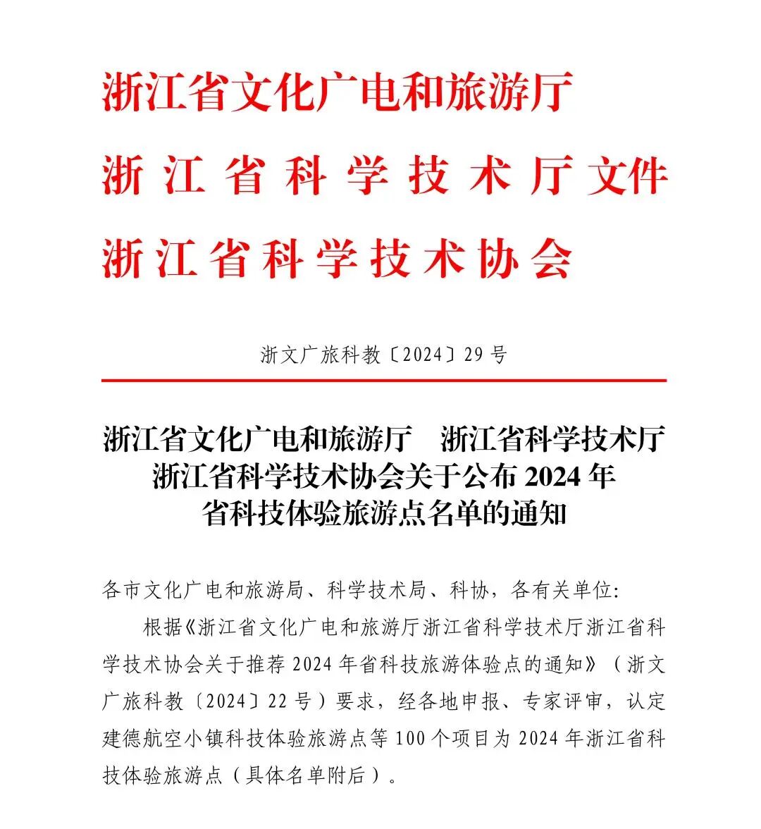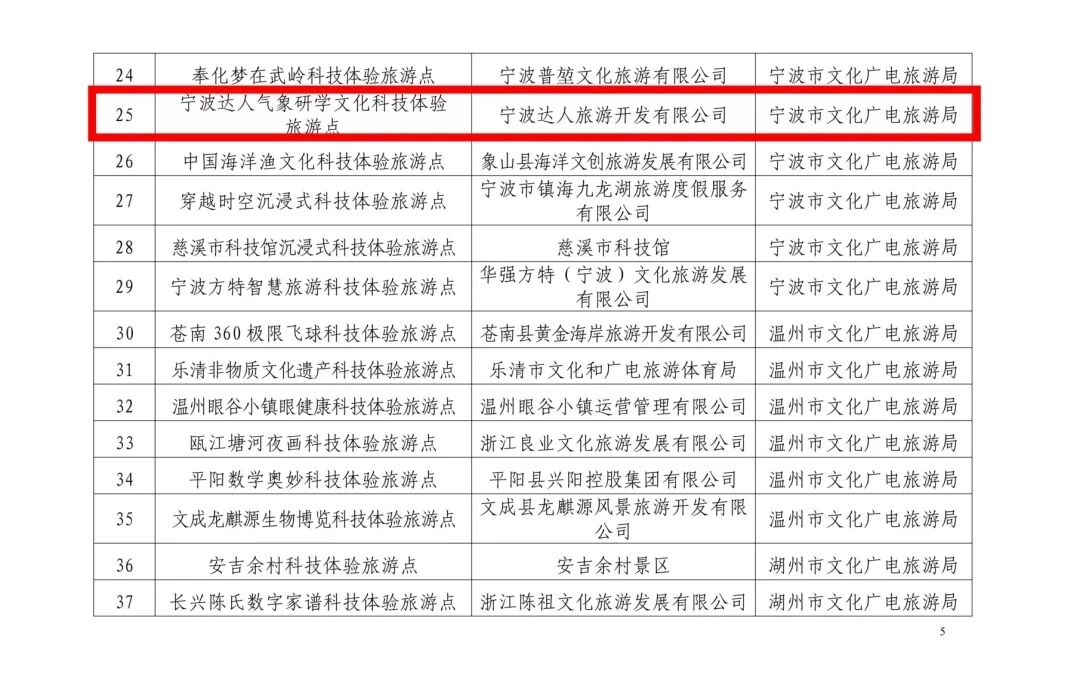近日,浙江省文化广电和旅游厅,浙江省科学技术厅,浙江省科学技术协会公布2024年省科技体验旅游点名单,达人村气象科普教育基地被评为“浙江省科技体验旅游点”