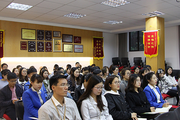 韩总围绕社群之谜、建群之术、社群之势三方面,从何为社群、如何运营社群入手,强调构成社群的五要素:同好、结构、输出、运营与复制。提到经营的核心是要有价值输出、人员身份定位,依托微信群与QQ群等网络平台,利用好社群五要素,从无到有建立自己的社群并通过核心价值输出,保持社群的活跃度,包括分享高质量的内容,提出共同感兴趣、关注度高的话题,同时向线下蔓延与成员进行面对面接触等,最终形成社群文化以发展壮大。韩总提出社群经济在当下之所以如此火爆,是移动互联网与新媒体进化的产物,我们可以借助云端技术做到社群可视化,实现工作中信息传达的便利性和营销的专业性,从而提高社群营销水平。韩总多次结合我们在实际销售工作的社群营销现状,以幽默风趣的言语,加深大家的认知与印象。