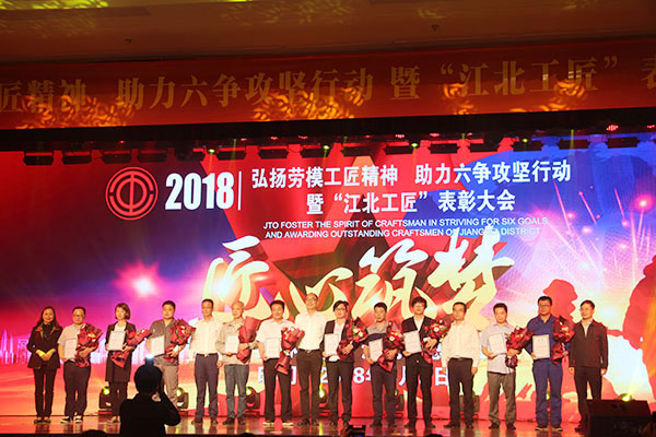 “弘扬劳模工匠精神,助力六争攻坚行动”!5月2日晚,江北工匠表彰大会在区文化中心隆重举行,江北区委常委、区委副书记孙旭东出席并讲话。大会上,达人李晶被授予“江北工匠”称号,来自各企事业单位的职工欢聚一堂,用歌舞、相声等形式弘扬工匠精神,筑梦时代匠心。