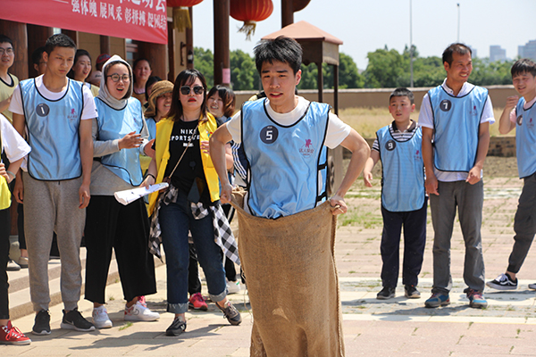 本次趣味运动会含集体项目、团体项目及个人加分赛项目,并围绕“乡村趣味运动会”将各组队伍以领队之姓冠以村名,分设童家村、沈家村、韩家村、陈家村、王家村、顾家村六队进行角逐,在各组队呼呐喊助威时便欲将气势压倒对方,现场气氛即刻点燃。