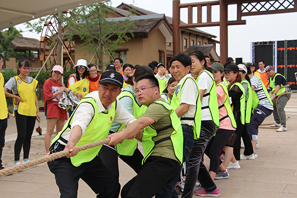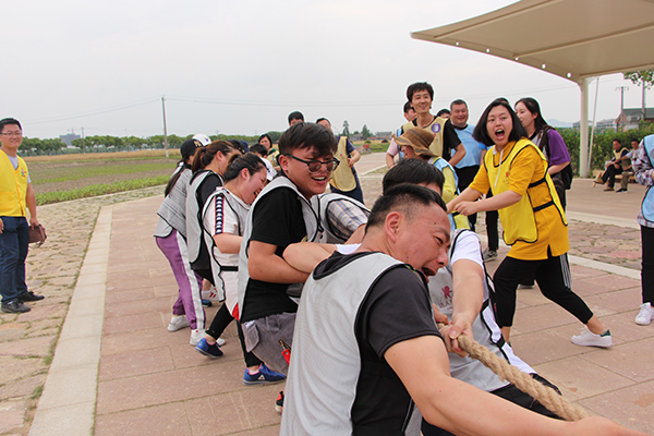 团体大拔河,是运动会的最后一个项目,各队纷纷组建出最强的比赛阵容。口号声、助威声在达人村上空此起彼伏,不论输赢丝毫不输气势,均全力以赴。