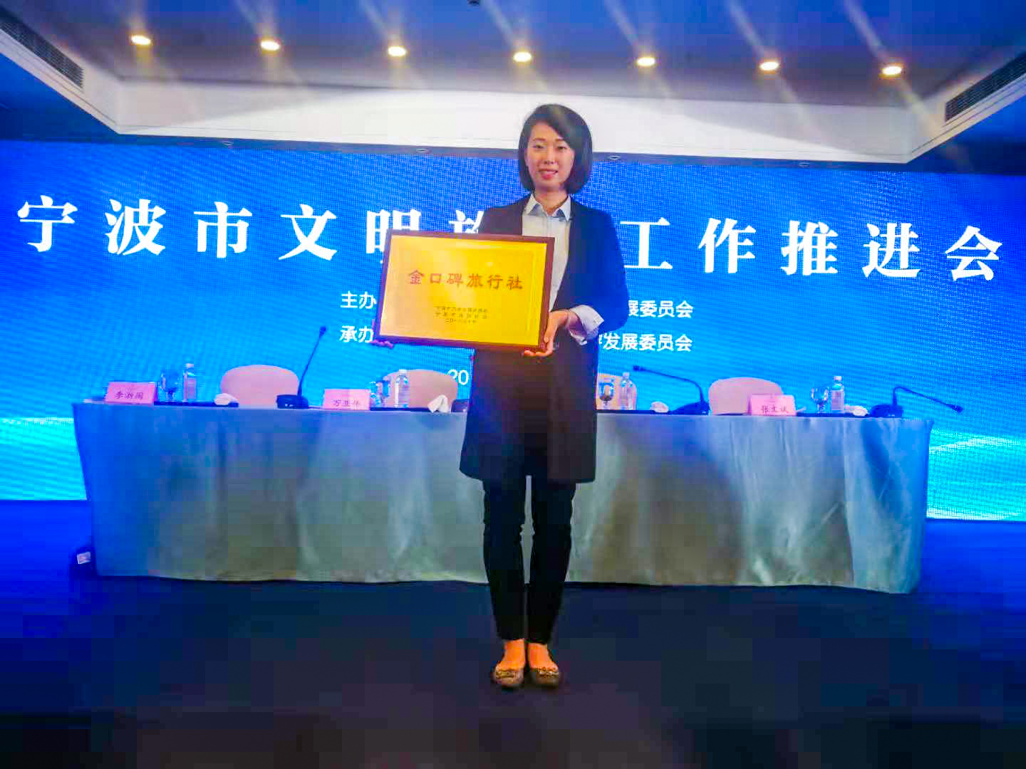 为进一步推进文明旅游示范作用,此次会议颁发了首批60个优质旅游企业和个人的“金字招牌”,串起宁波文明旅游的形象墙。浙江达人旅业股份有限公司荣获“金口碑旅行社”称号,达人李晶获“金牌导游”、刘俪心获“金星级旅游志愿者”荣誉称号。