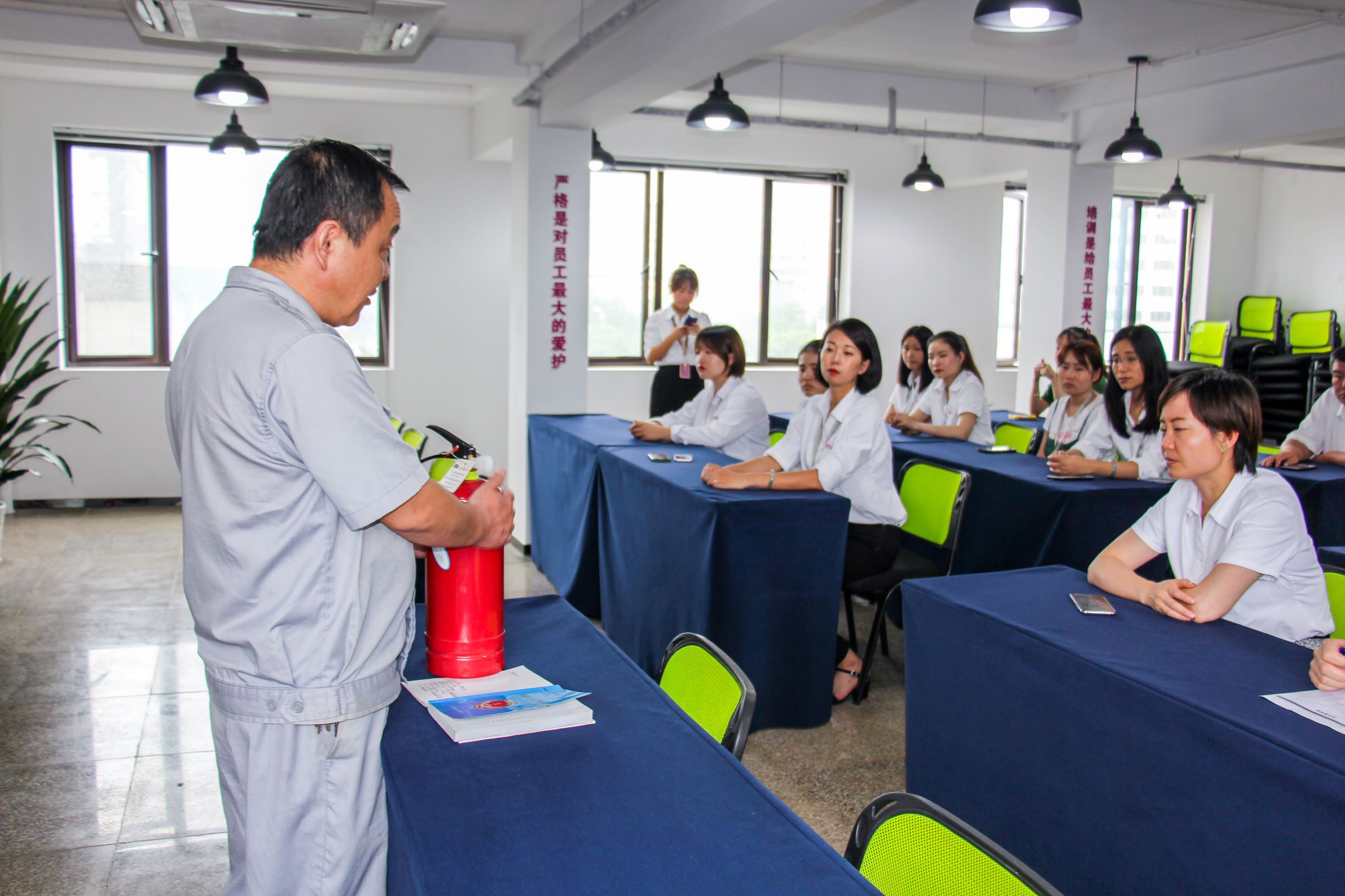 在大厦物业王主任和安全员徐师傅的带领下,对此次参训员工进行了消防安全知识讲解。办公室主任孙怡针对我司实际情况,提出了大楼电梯安全使用的注意事项,并强调大家要做好安全预防工作,提高相关安全意识。