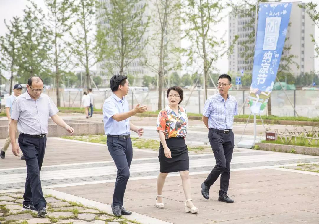 丁书记一行走访了达人村的各个核心区域、详细了解现场会的准备情况,重点检查了马上开放的遛哒冰雪王国项目。达人旅业总裁童伟标向丁书记汇报7月6日启动的达人村·冰雪纳凉节活动准备情况。