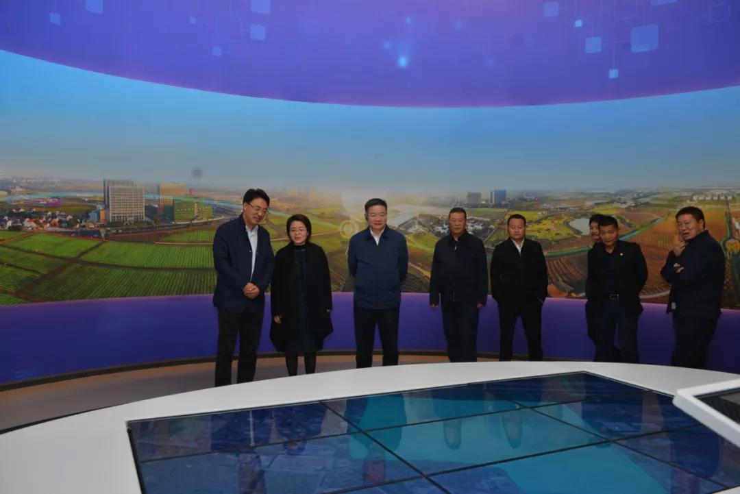 杨主任一行观看了甬江乡村数字体验馆的数字技术、全息投影、人机互动等农业黑科技,见证了甬江街道北郊片区近几年来乡村振兴与发展的华丽蜕变,通过数字化智能沙盘介绍,了解了达人村从无到有,从有到优,从优到精的过程。