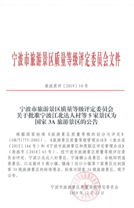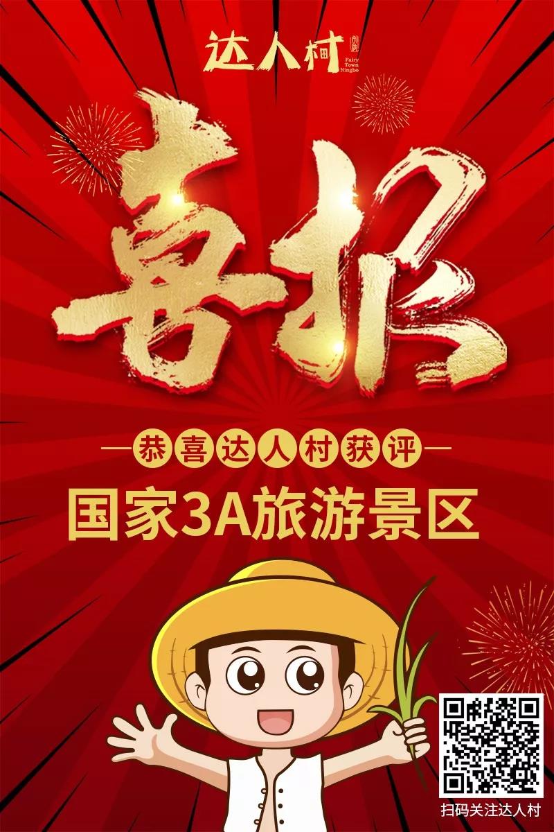 12月23日,经宁波市旅游景区质量等级评定委员会评定,宁波江北达人村景区成功获评国家3A级旅游景区!