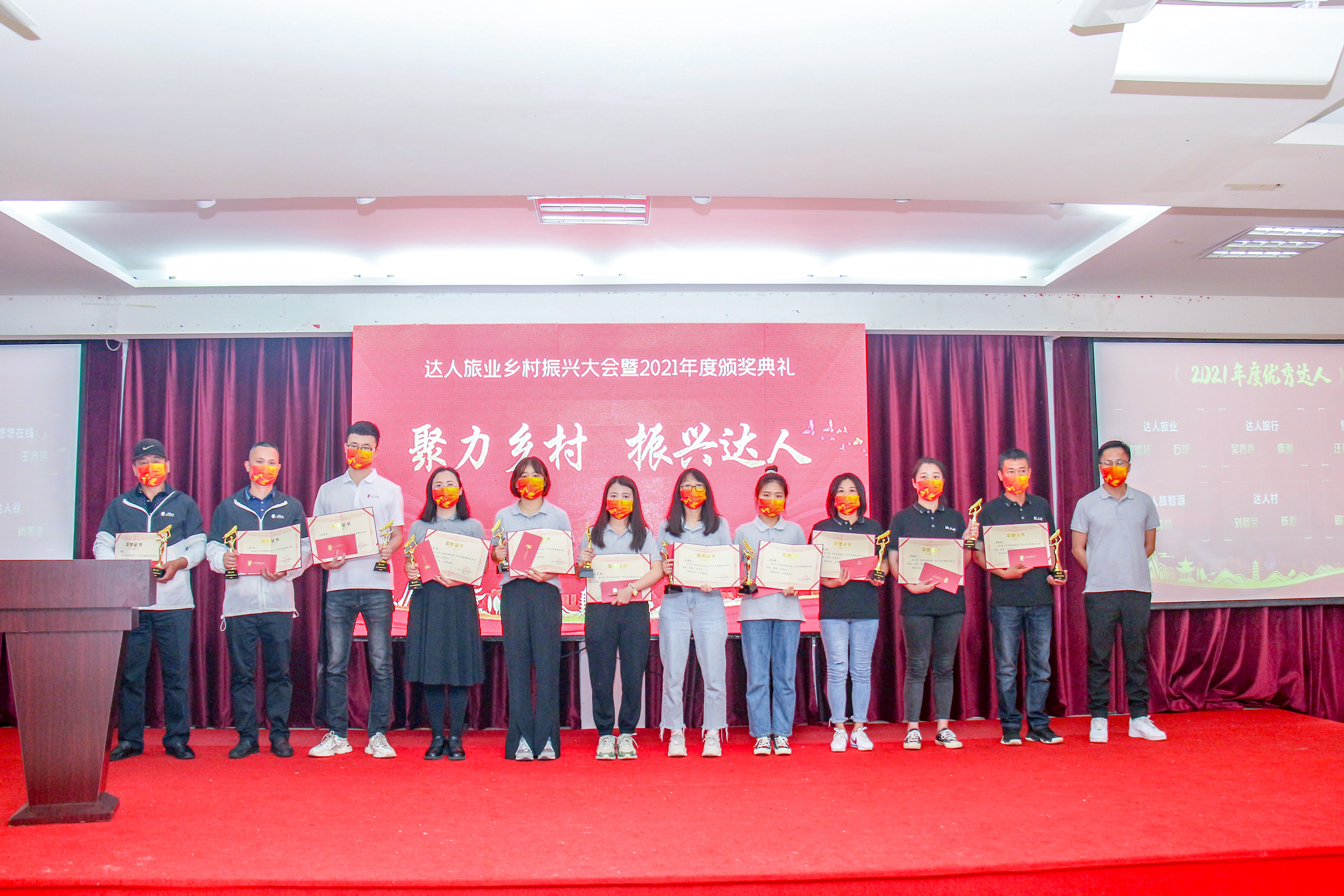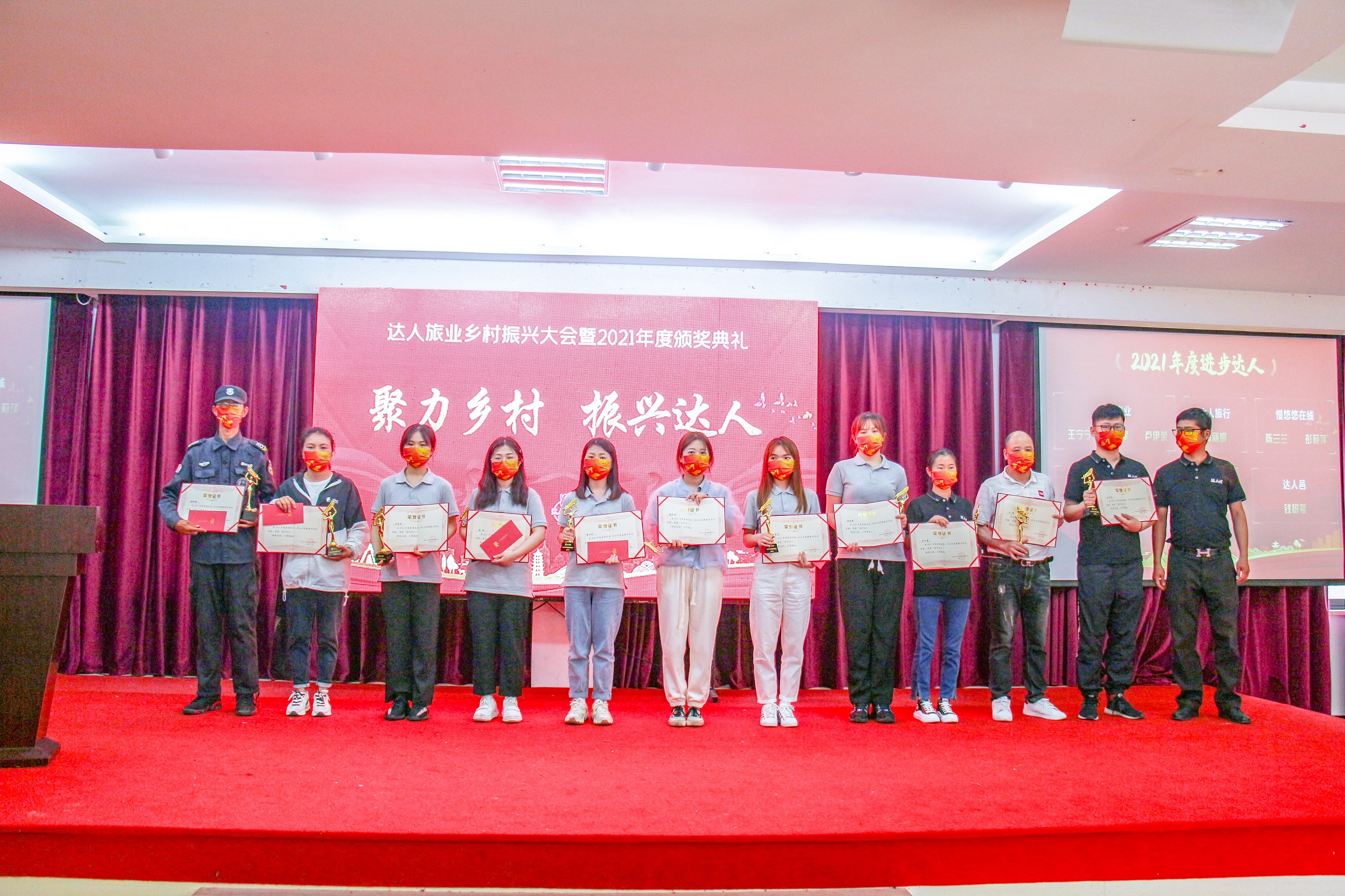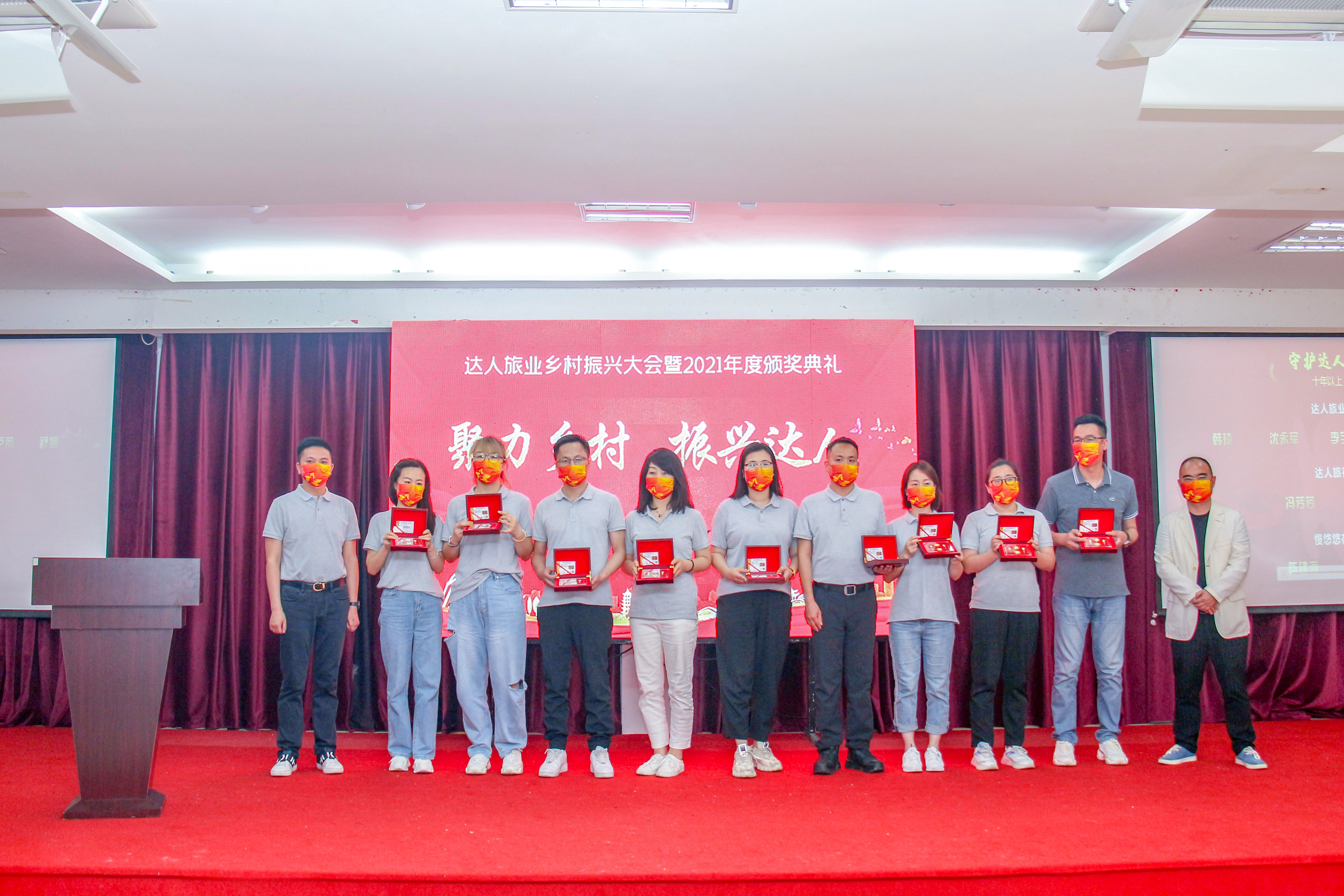 4月24日,达人旅业在奇遇·达人坞召开“聚力乡村 振兴达人”为主题的乡村振兴大会暨2021年度颁奖典礼。董事长刘勇、总裁室全体成员、合伙人及获奖员工出席本次会议。