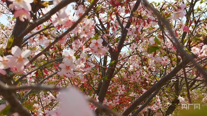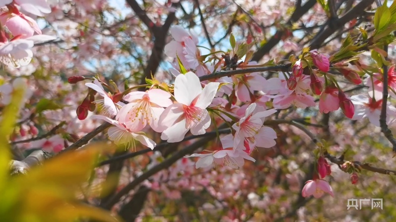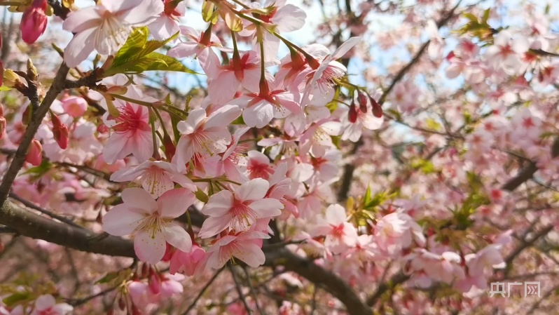 从山脚下拾级而上,漫山遍野,一树树、一丛丛、一片片野生樱花的海洋,盛开时美如云霞,尽显春色。据悉,目前盛开的是早樱,数量达2万-3万棵,共有10多个品种,花期长达15至20天。3月中旬开始,中樱将次第盛开。